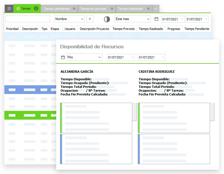 Acceso inmediato y control total de tus proyectos, sus tareas, plazos y trabajadores. Mide la rentabilidad de cada proyecto y el tiempo y gasto detallado de todos los trabajadores.